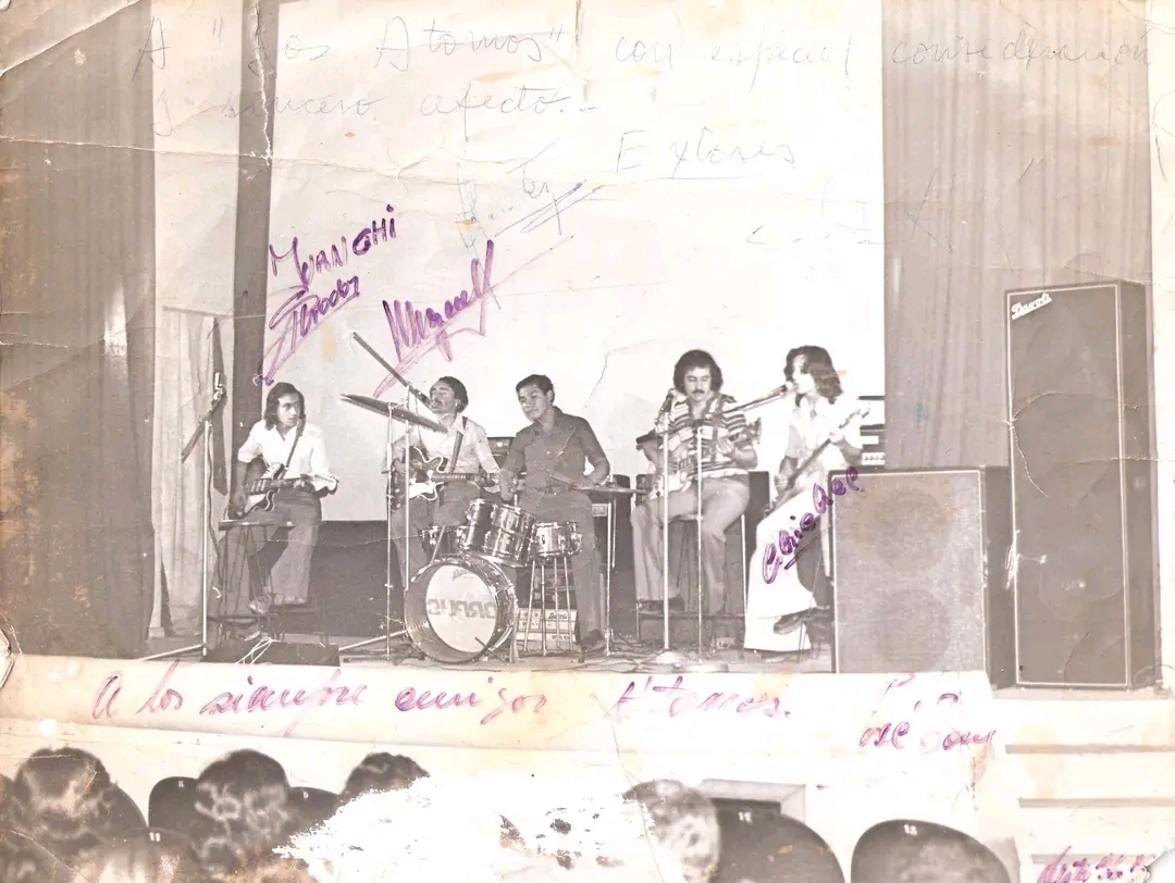 Estaban todas las letras censuradas, no se podían cantar las letras originales y siempre iba un señor de saco y corbata a controlar. Era difícil entrar en la consideración del público, acostumbrados a la música comercial “nos gritaban peste, nos decían ustedes son unos degenerados”. Por esos tiempos los hermanos Salvador organizaron el Primer Recital de Rock. El conjunto se llamaba “Extasis” y tocaban Miguel y Chiche Córdoba, Alberto Salvador (el turco que le decíamos), Benitez y el Juanchi Salvador. Te cuento una anécdota. Una vez lo contrataron para un baile de carnaval en Comercio, y largaron un tema de rock, se armó un despelote porque esa no era música que se bailaba, llegando a exasperarse tanto los ánimos, que el Indio Cardozo le tiró con una botella de ginebra y dispararon todos a la mierda. En nuestras actuaciones, iban todos jóvenes, estudiantes, hacíamos temas de Charli García, Serú Girán era nuevito, siempre hacíamos cover. En esa época, para las actuaciones nos vestía la vaquería “Robert Lewis” de Yoyi Geminiani (en verano nos daba pantalones blancos, que se lo ensuciábamos y el Yoyi nos puteaba).