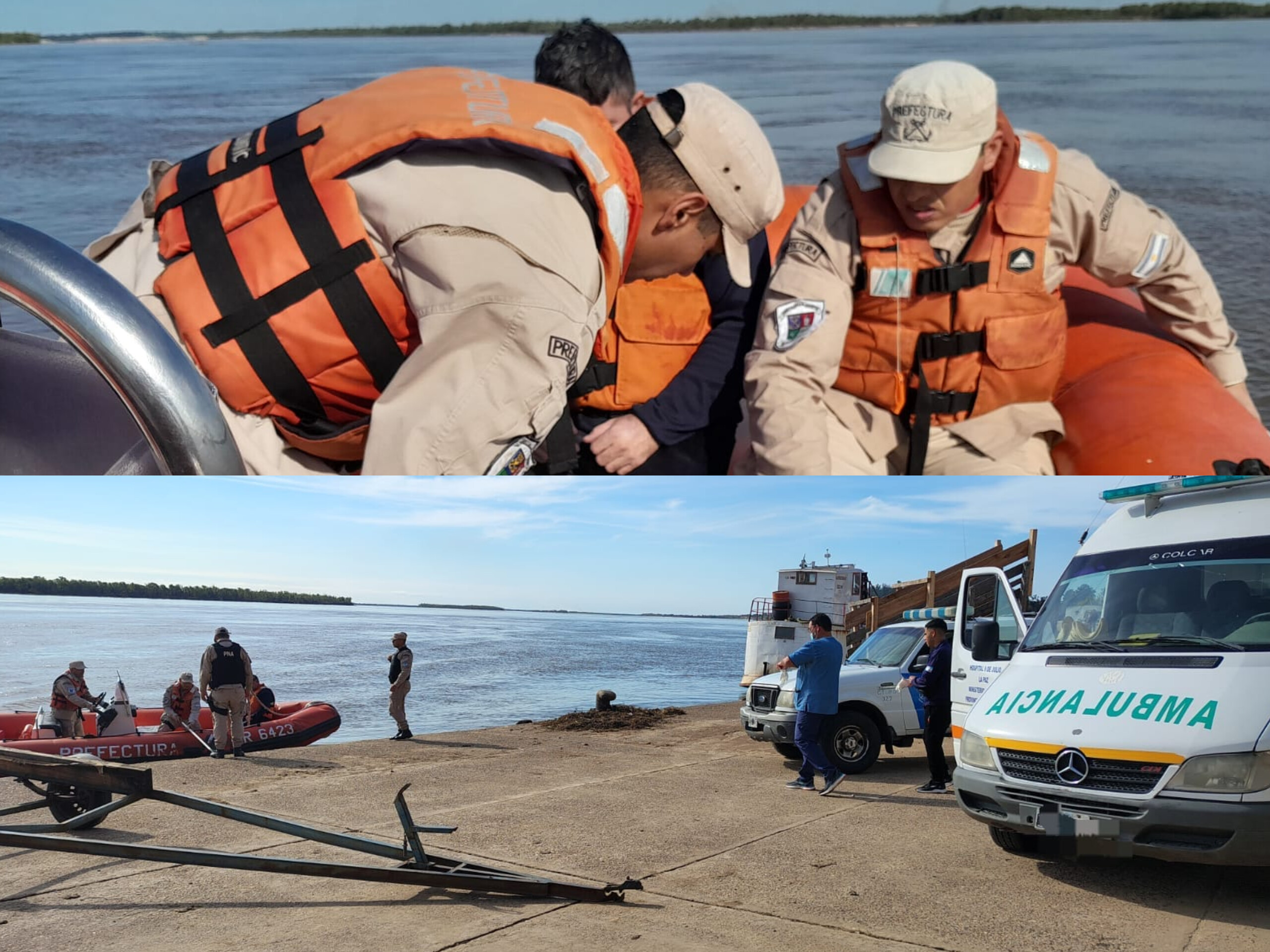 Personal de la Prefectura Naval Argentina realizó un operativo de rescate en el río Paraná, luego de que dos tripulantes cayeran al agua desde una embarcación auxiliar del buque de carga Innovador, mientras realizaban trabajos técnicos en una zona compleja, en la ciudad de La Paz, Entre Ríos.