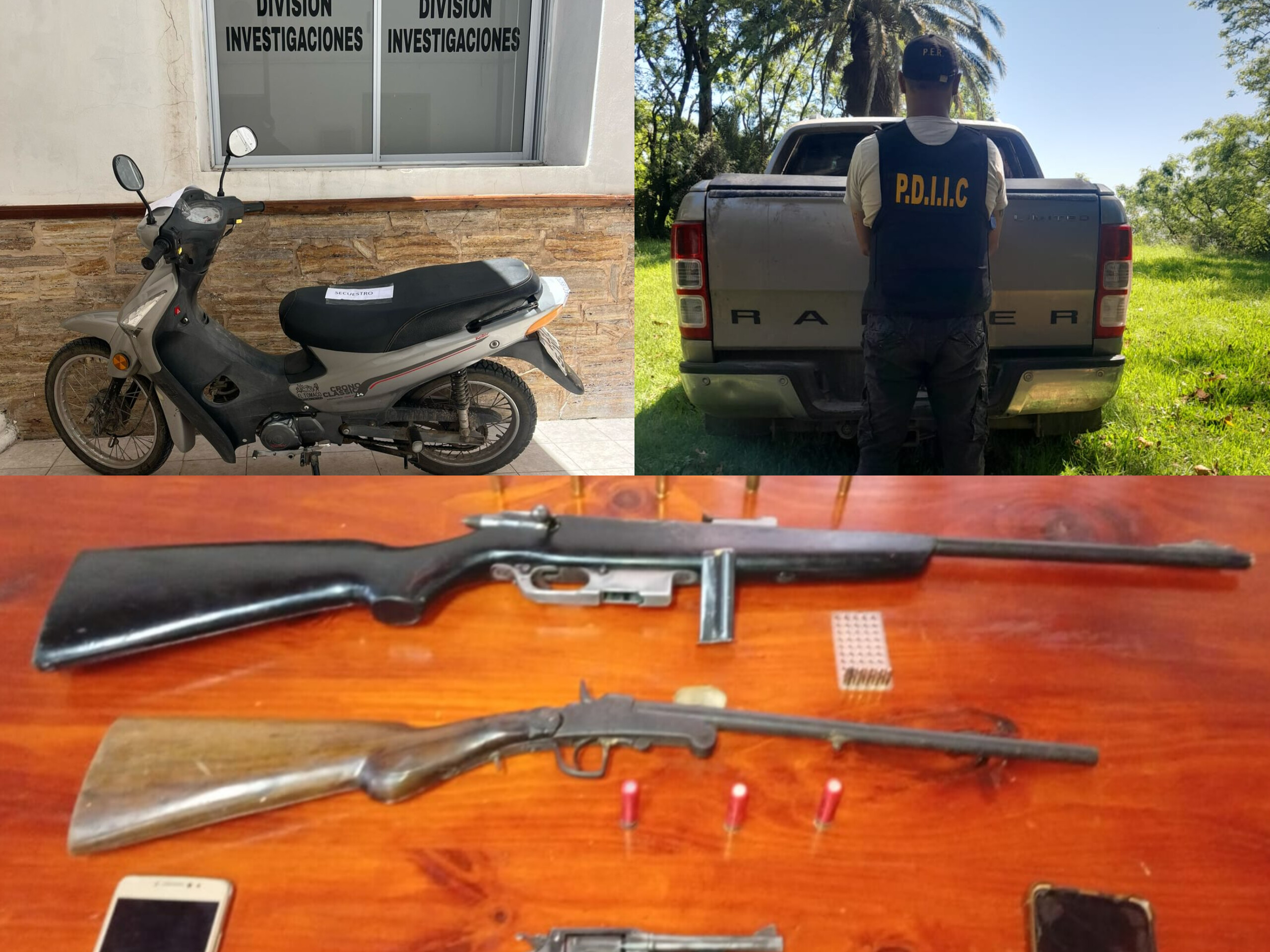 Asimismo, en uno de los allanamientos se efectuó el secuestro de armas de fuego de distintos calibres y cartuchería, en el marco de una infracción a la normativa vigente.