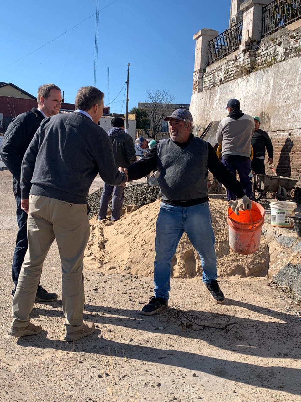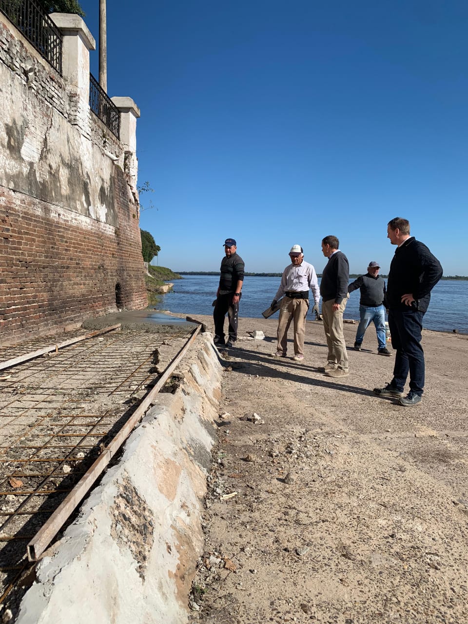 Personal de Obras Públicas continúa trabajando en el reacondicionamiento de la base de hormigón en el muelle bajo, como parte del plan de mejoras en la infraestructura portuaria.