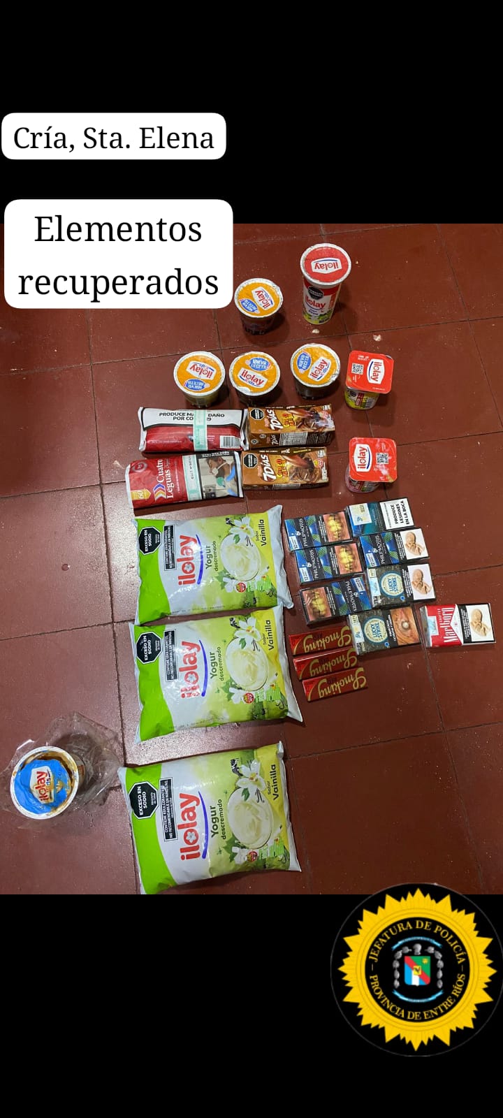 De acuerdo a informe policial,enhoras de la mañana del lunes 5 de enero, personal policial de la Comisaría Santa Elena intervino ante un hecho de robo ocurrido en la intersección de calles San Juan y avenida Presidente Perón, de esa localidad.